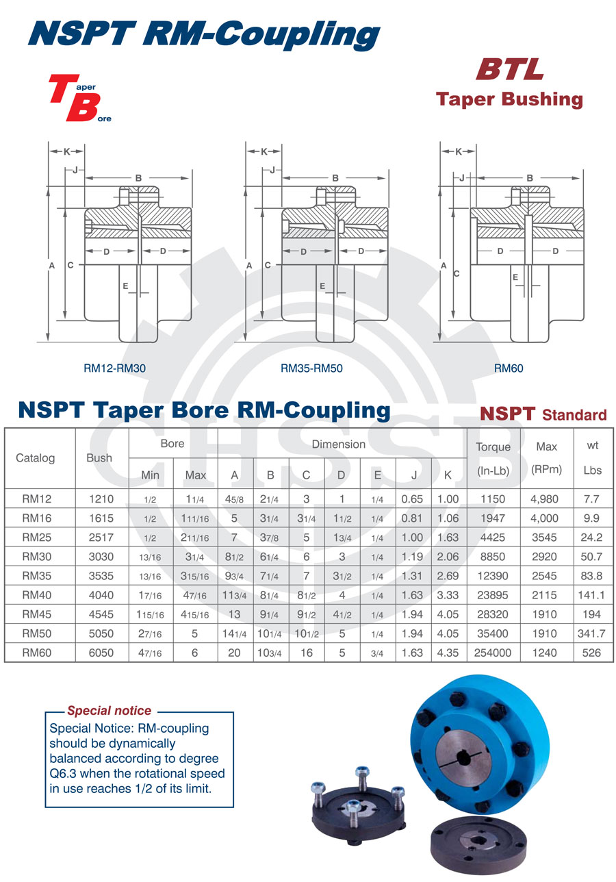 產品范圍: 美標/歐標:(RM) 英制尺寸產品(適用于美標市場) 公制尺寸產品(適用于歐標市場) RM型聯軸器